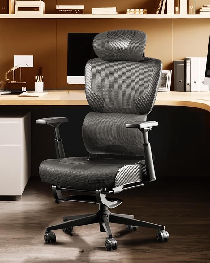 The Hbada E3 Air combines breathable mesh comfort with 3D adjustable lumbar support, a reclining backrest, and 3D armrests. Built for long work sessions, it’s ideal if you want premium comfort without compromising style.