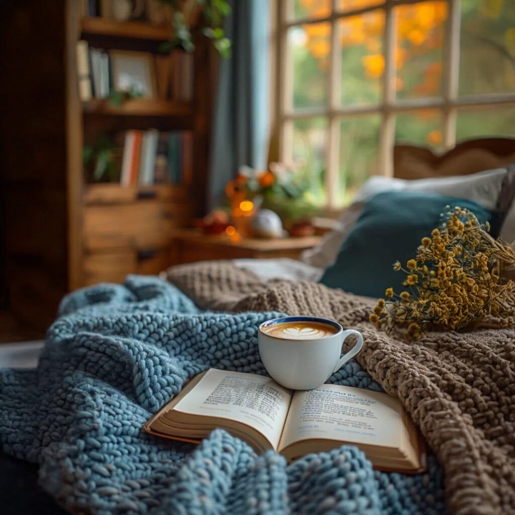 It’s the decision to light a candle and read before bed instead of scrolling endlessly on a phone. It’s arranging your workspace with soft lighting, plants, and a cup of tea, so work feels less like a battle and more like a flow. It’s about enjoying mornings without rushing, creating cozy corners in your home, and treating yourself with gentleness instead of pressure.
